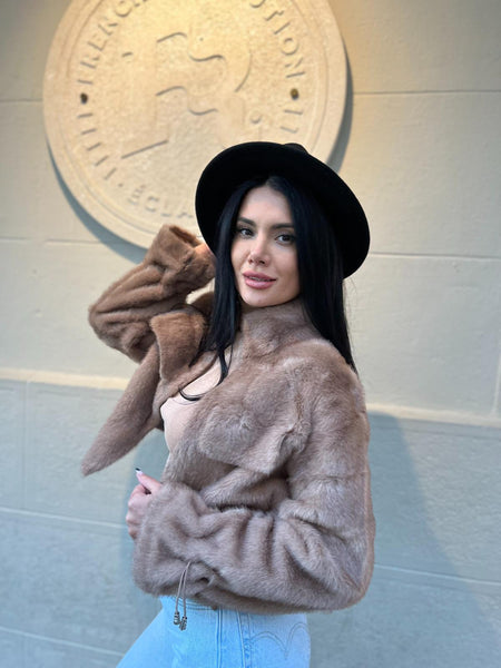 Jacheta are maneci lungi cu elastic, guler inalt si