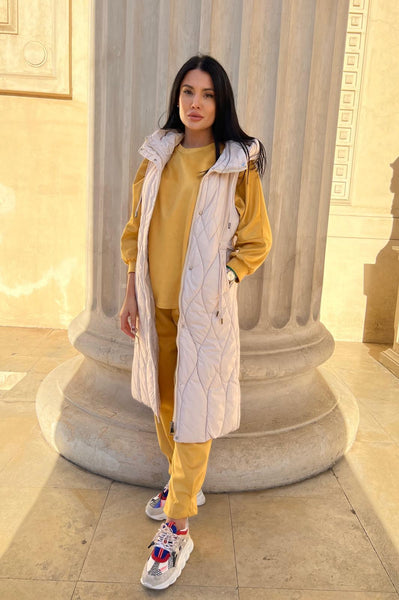 O vestă lungă matlasată te va face să ieși în evidență din mulțime. Vesta se inchide cu fermoar si cu capse. Modelul are gluga nedetasabila si buzunare . Disponibila in doua culori. Este cu siguranță un MUST HAVE al sezonului viitor. Va fi grozav pentru toamna si iarna pentru ca este izolata. Sunt șireturi pe laterale.
