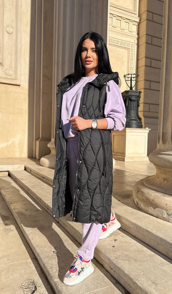 Vesta matlasata lunga de dama neagra, realizata din material de inalta calitate si conceputa dupa cele mai noi tendinte in moda.
